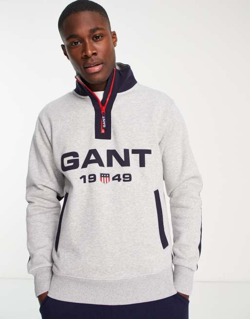 GANT - Sweatshirt met retro logo en korte rits in gemêleerd grijs