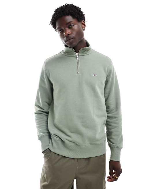 GANT - Sweatshirts met geborduurd schildlogo en korte rits in middengroen