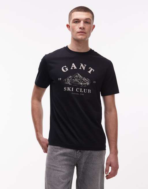 GANT - T-shirt met grafische 'Ski Club' print op de voorkant in zwart