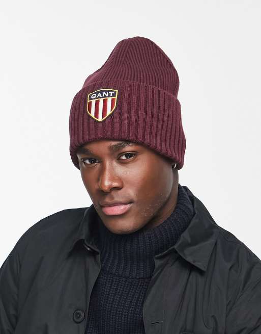GANT - Wollen beanie in bordeauxrood met groot schildlogo