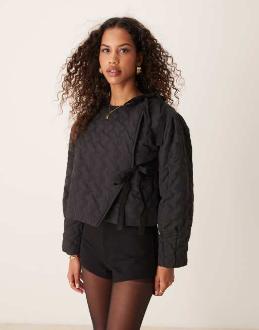 Ghospell - Briar - Doorgestikt jack met strikdetail in zwart