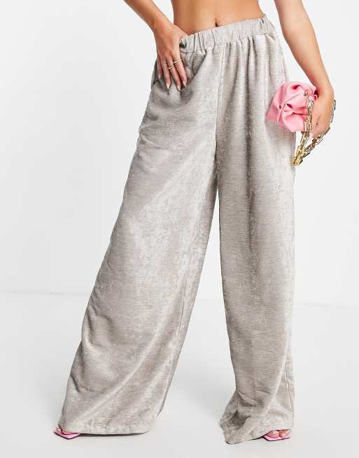 Ghospell - Broek met wijde pijpen in glanzend beige