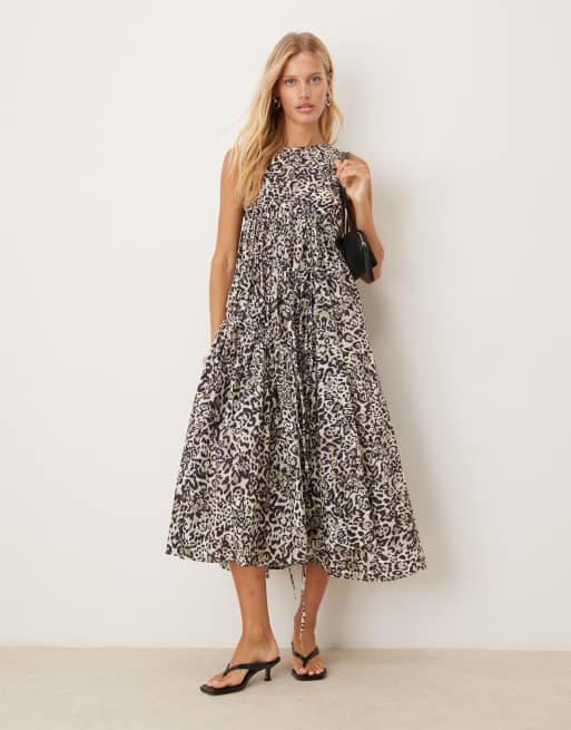Ghospell - Midaxi jurk met trekkoord in luipaardprint