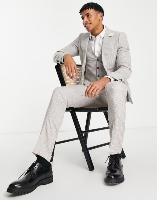 Gianni Feraud - Slim-fit pak met pied-de-poule print in bruin