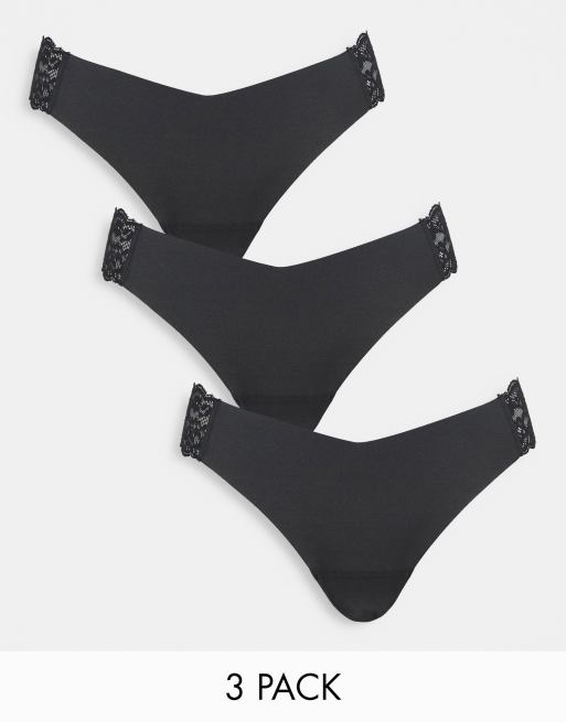 Gilly Hicks - Set van 3 onzichtbare hoogopgesneden slips met kanten zijkanten in zwart