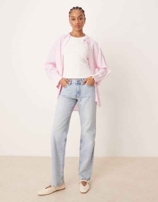 Gina Tricot Tall - Jeans met rechte pijpen en lage taille in lichte wassing blauw