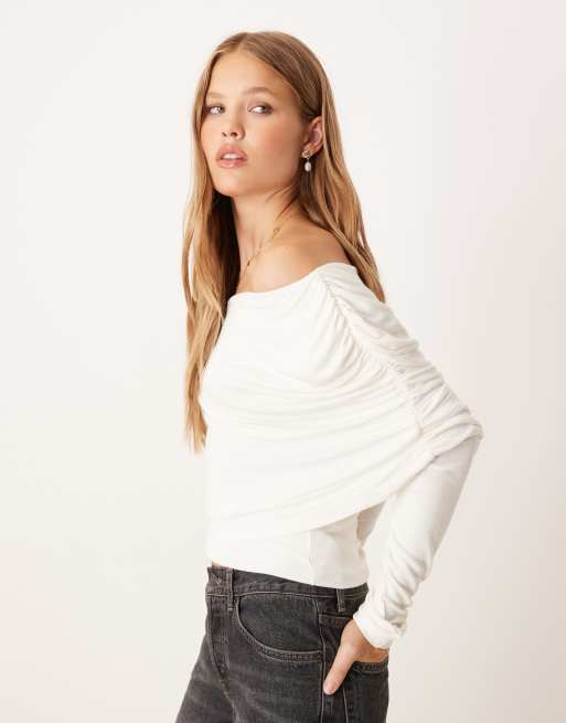 Gina Tricot - Cape-top met lange mouwen en afhangende gedrapeerde schouders in crème