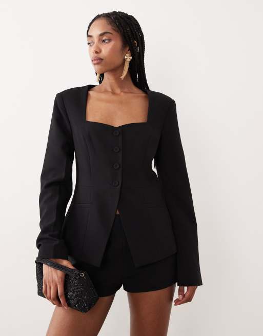 Gina Tricot - Elegante blazertop met hartvormige halslijn in zwart