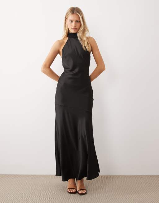 Gina Tricot - Maxi-jurk van satijn met halternek in zwart