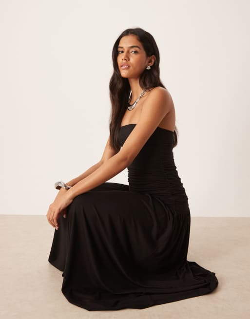 Gina Tricot - Midi-jurk van jersey met verlaagde taille in zwart