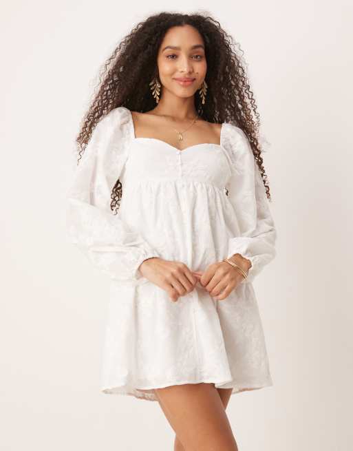 Gina Tricot - Mini jurk met lange mouwen, knoopsluiting en bloemenprint in wit