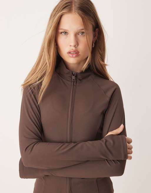 Gina Tricot - Mix en match - Naadloos yogajasje met rits in donkerbruin