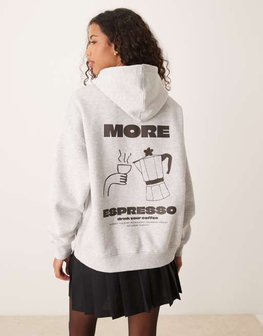 Gina Tricot - Oversized hoodie met bruine Espresso-print in gemêleerd lichtgrijs
