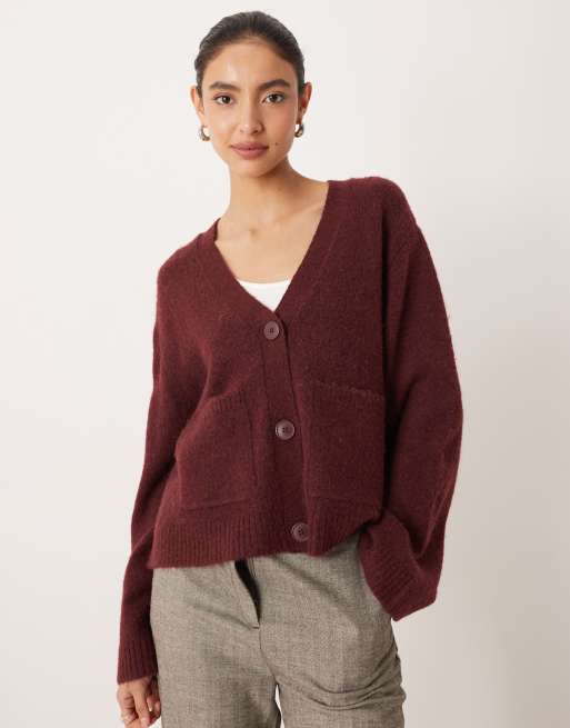Gina Tricot - Ruimvallend gebreid vest met zakken in bordeauxrood