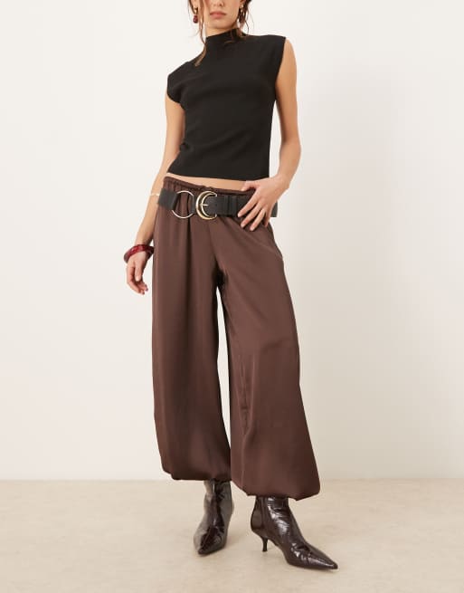 Gina Tricot - Satijnen ballonbroek in chocoladebruin