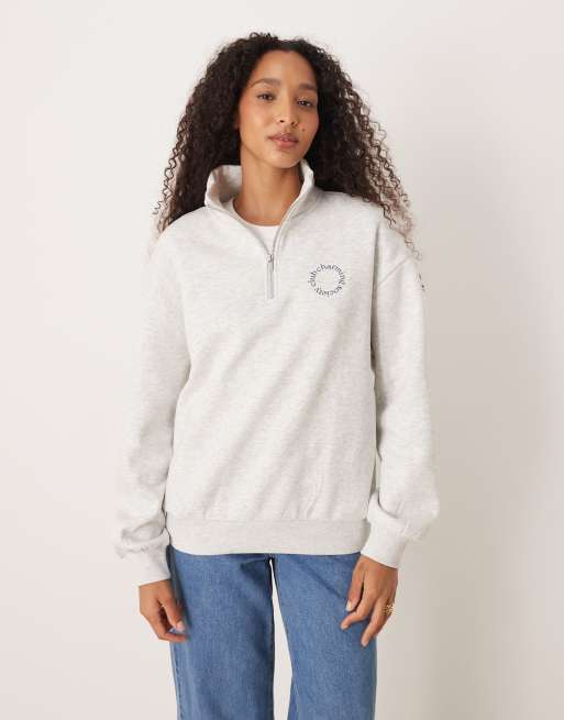 Gina Tricot - Sweater met 'Charming Society Club'-print en korte rits in gemêleerd grijs