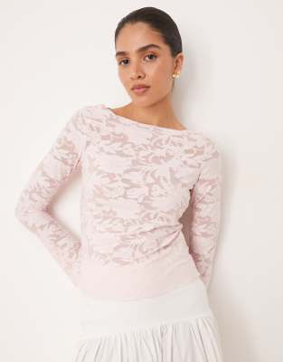 Gina Tricot - Top met lange mouwen, textuur, print en ronde hals in lichtroze