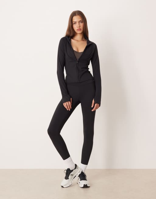 Gina Tricot - Yogalegging met rimpeleffect en hoge taille in zwart, deel van co-ord set