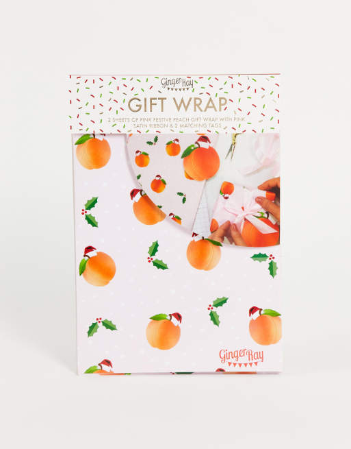 Ginger Ray - Set met inpakpapier, lint en kaartje met perzikmotief