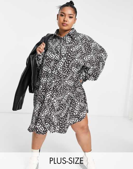 Glamorous Curve - Ruimvallende overhemdjurk met zwart-witte print