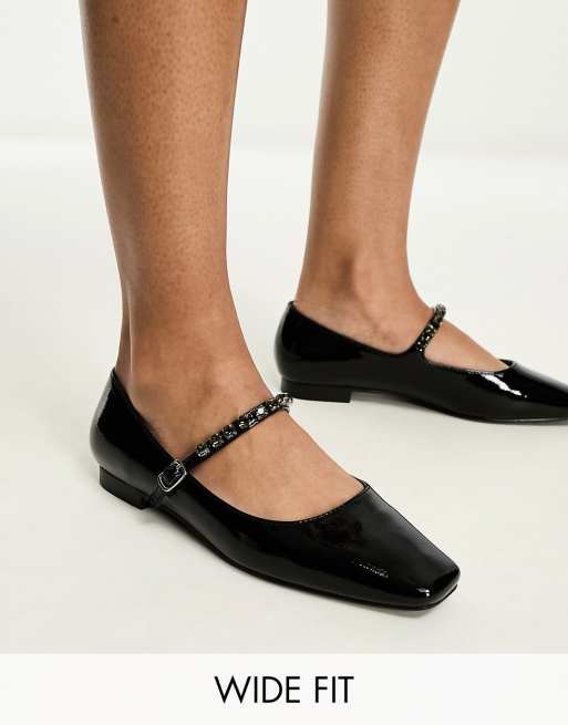 Glamorous Wide Fit - Mary Janes met versierd bandje in zwart lakleer