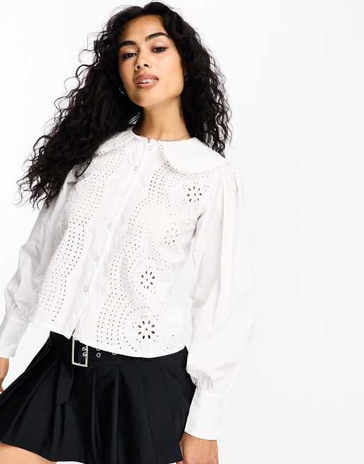 Glamorous - Blouse van broderie met kraagje in wit