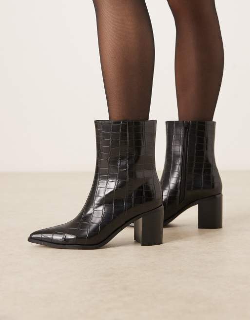 Glamorous - Enkellaarzen met puntige neus en krokodillenmotief in zwart