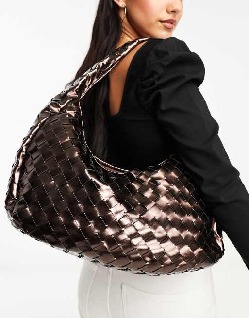 Glamorous - Geweven oversized schoudertas in metallic chocoladebruin