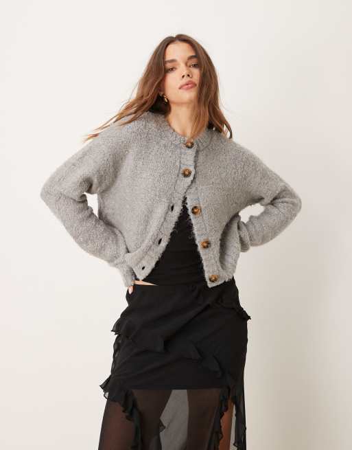 Glamorous - Grofgebreid cropped vest met rechte pasvorm in gemêleerd grijs