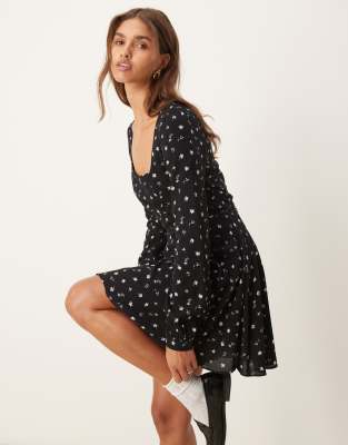 Glamorous - Nette mini jurk met lange mouwen en bloemenprint in zwart en lila