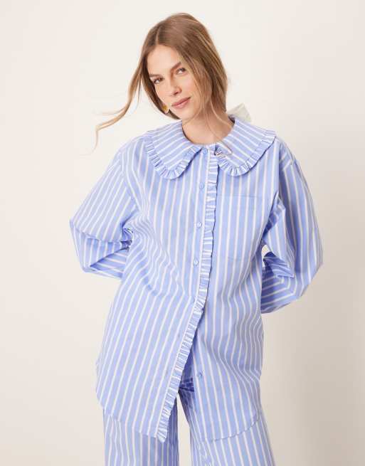 Glamorous - Overhemd met knopen in blauw gestreept, deel van co-ord set