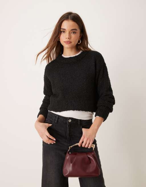 Glamorous - Pluizig gebreide rechte trui in zwart
