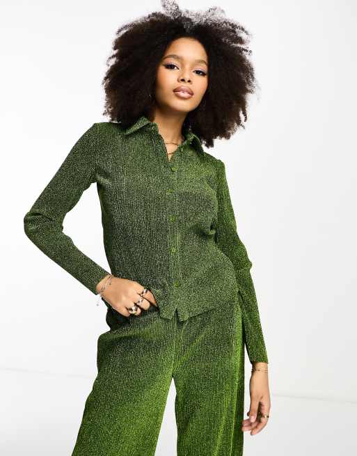 Glamorous - Ruimvallend overhemd in groen glitter, deel van co-ord set
