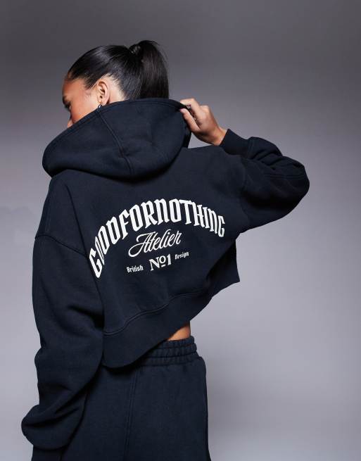 Good For Nothing - Cropped hoodie met rits en logoprint op de achterkant in gebroken zwart, deel van co-ord set