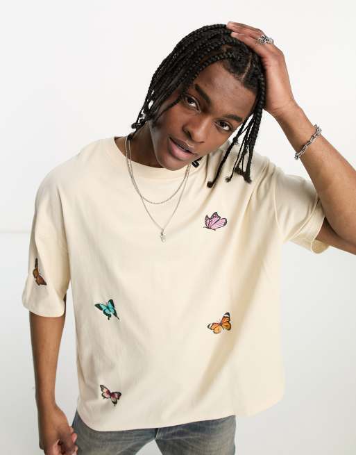 Good For Nothing - Oversized T-shirt in gebroken wit met meerdere vlinderprints