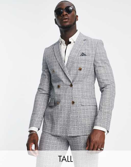 Harry Brown Tall - Geruit double breasted slim-fit colbert