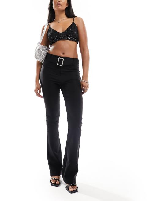 Heartbreak - Broek van bengaline met halfhoge taille en riem met gesp met stras in zwart, deel van co-ord set
