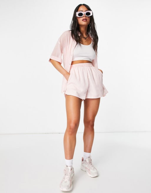 Heartbreak - Combi-set met overhemd en short in roze ruitje