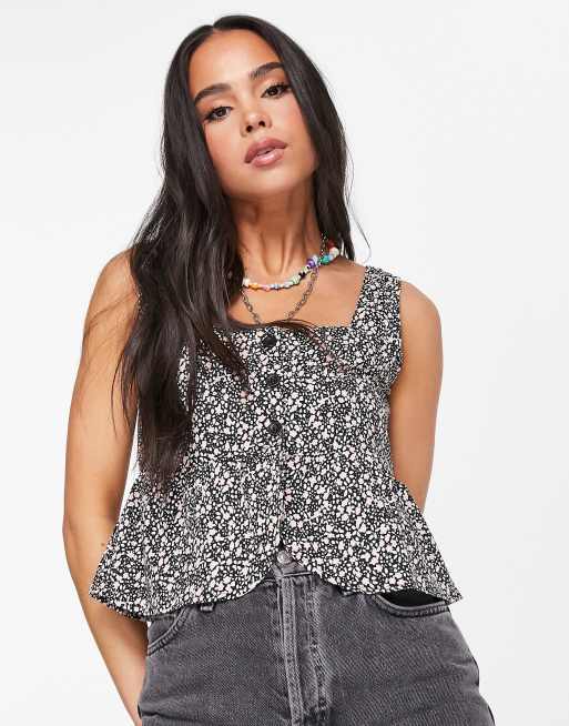 Heartbreak - Crop top met ruche aan de zoom en fijne bloemenprint, deel van co-ord set
