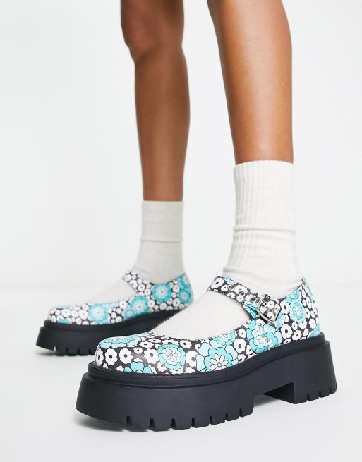 Heartbreak - Platte schoenen met dikke zool en madeliefprint