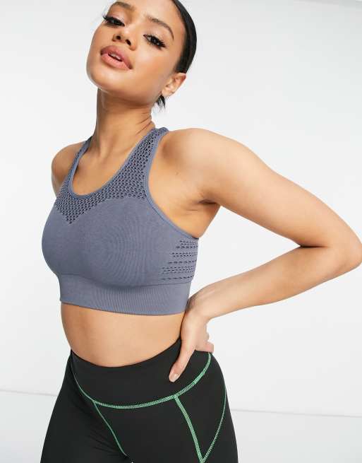HIIT - Naadloze bh met ajour in petrolblauw