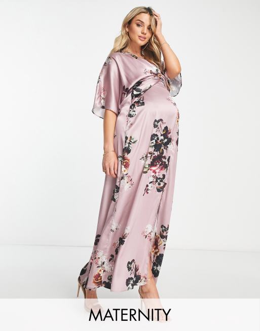 Hope & Ivy Maternity - Satijnen maxi jurk met kimonomouwen in mauve