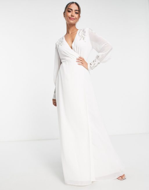 Hope & Ivy - Bruidskleding - Maxi jurk met overslag en borduursels in ivoorwit