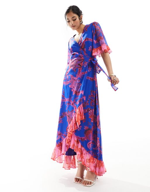 Hope & Ivy - Maxi-jurk met overslag en bloemenprint in blauw