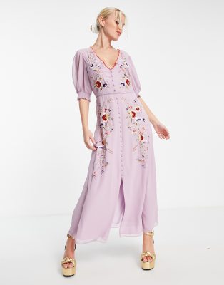 Hope & Ivy - Mila - Geborduurde midi-jurk in roze