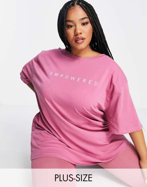 Hoxton Haus Plus - Oversized fitnesstop met logo in roze