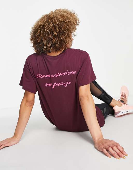 Hoxton Haus - Oversized fitness T-shirt met slogan in donkerpaars