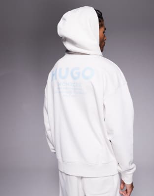 Hugo Blue - Losse hoodie in stone met blauw logo, deel van co-ord set