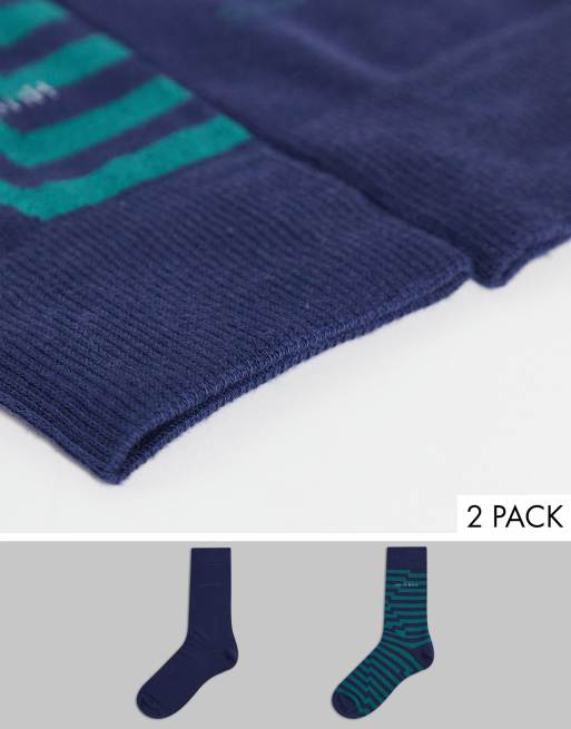HUGO - Set van 2 paar gestreepte sokken in blauw