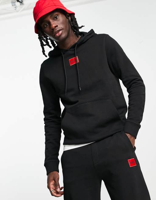 Hugo - Daratschi - Hoodie met omkaderd logo in zwart